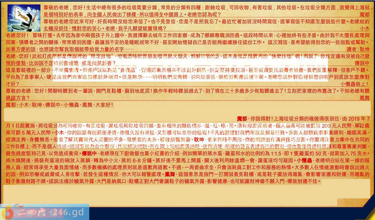 124期香港生活开门联:马后来到三七跟,狗胆第一闻天下,解【枯】【27619】