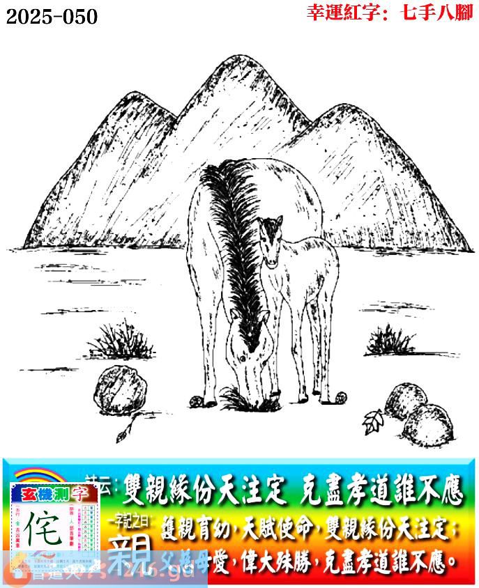 050期老版跑狗一字記之曰:【親】 詩雲:雙親緣份天注定,克盡孝道誰不應。