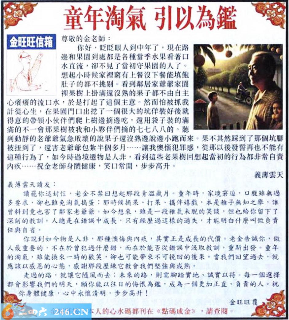 024期:金旺旺信箱彩民推荐→→《童年淘氣 引以為鑑》