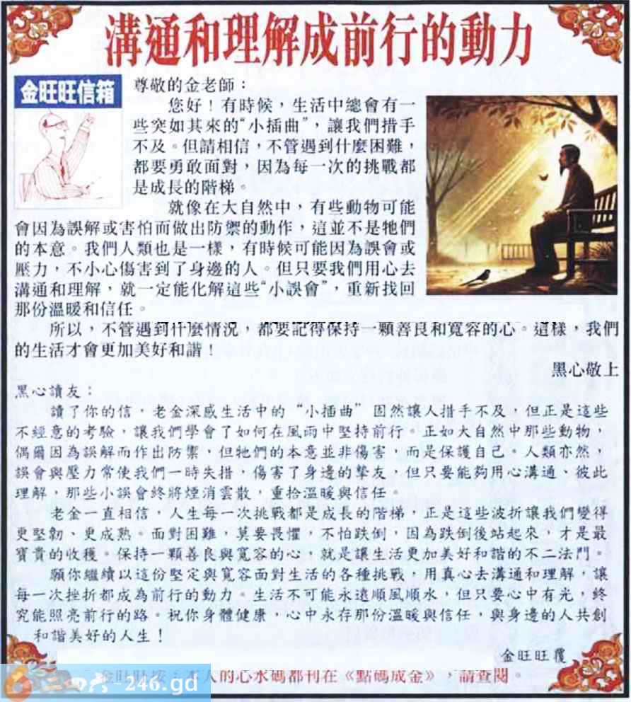 2025064期064期:金旺旺信箱彩民推荐→→《溝通和理解成前行的動力》