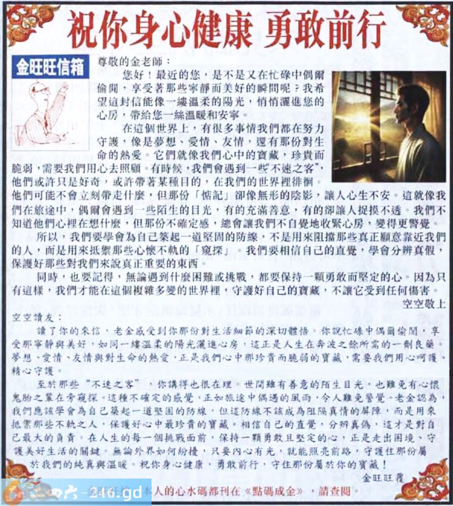 065期:金旺旺信箱彩民推荐→→《祝你身心健康 勇敢前行》