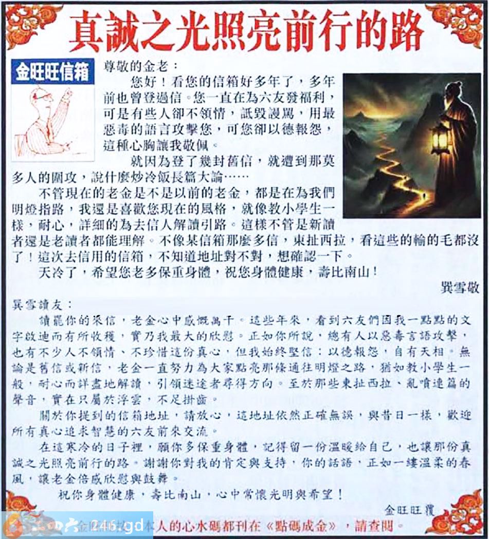 082期:金旺旺信箱彩民推荐→→《真誠之光照亮前行的路》