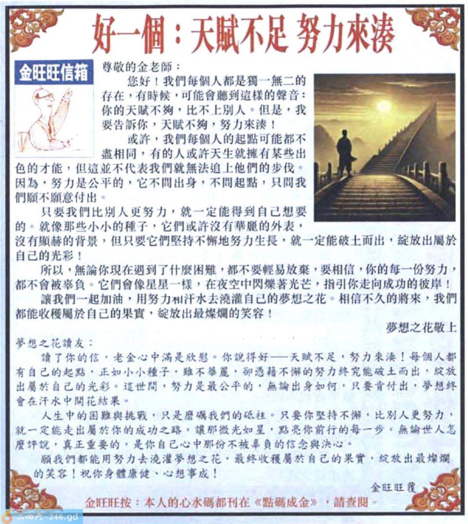 2025084期084期:金旺旺信箱彩民推荐→→《好一個:天賦不足 努力來湊》