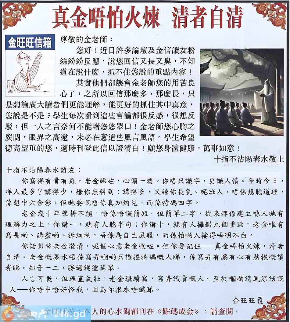 2025086期086期:金旺旺信箱彩民推荐→→《真金唔怕火煉 清者自清》