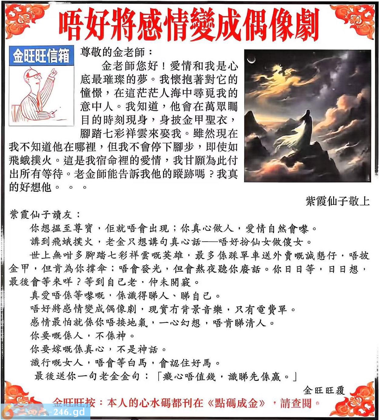 089期:金旺旺信箱彩民推荐→→《唔好將感情變成偶像劇》