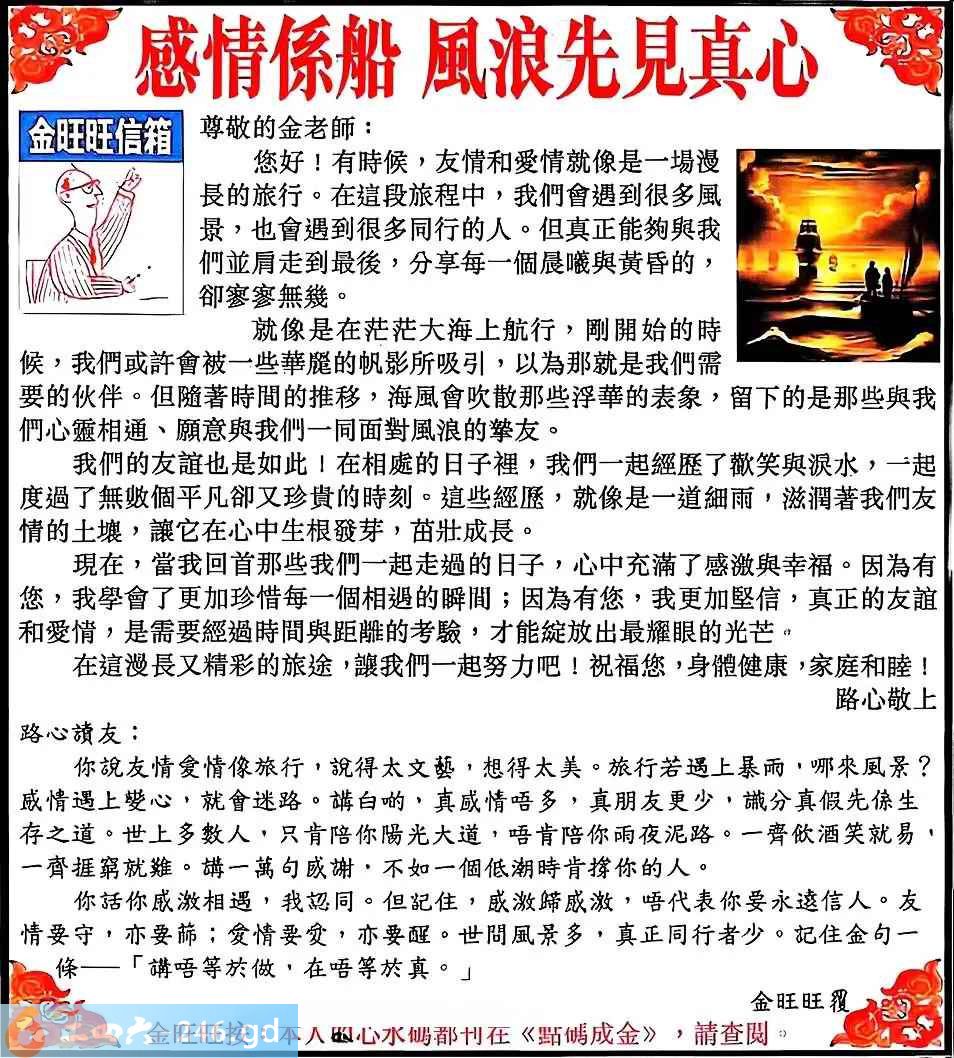 2025095期095期:金旺旺信箱彩民推荐→→《感情係船 風浪先見真心》