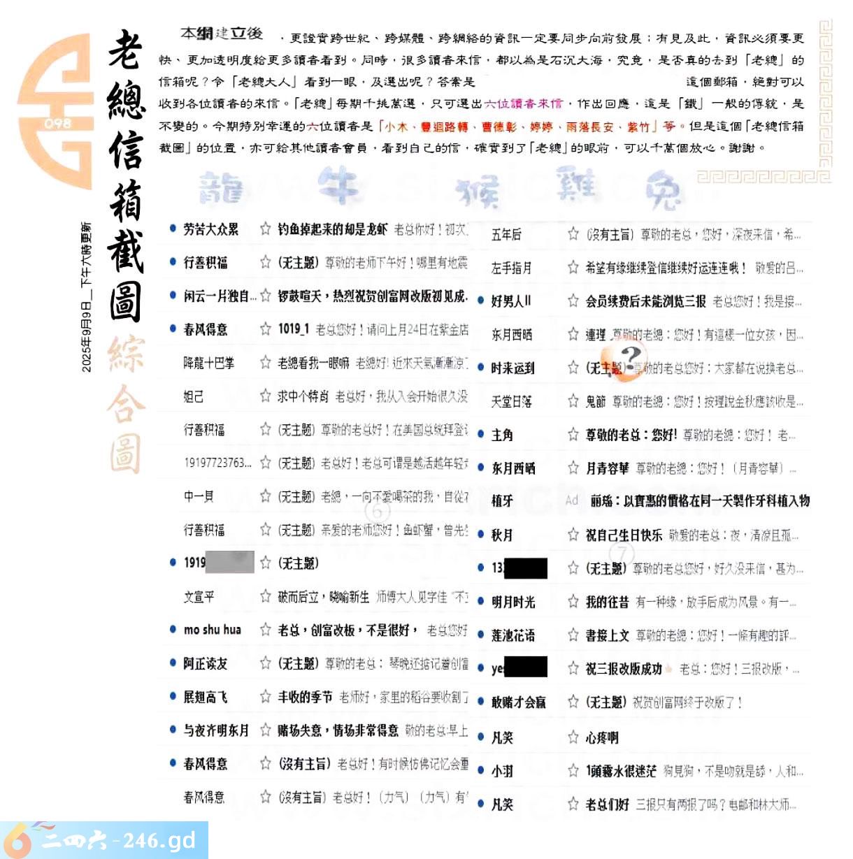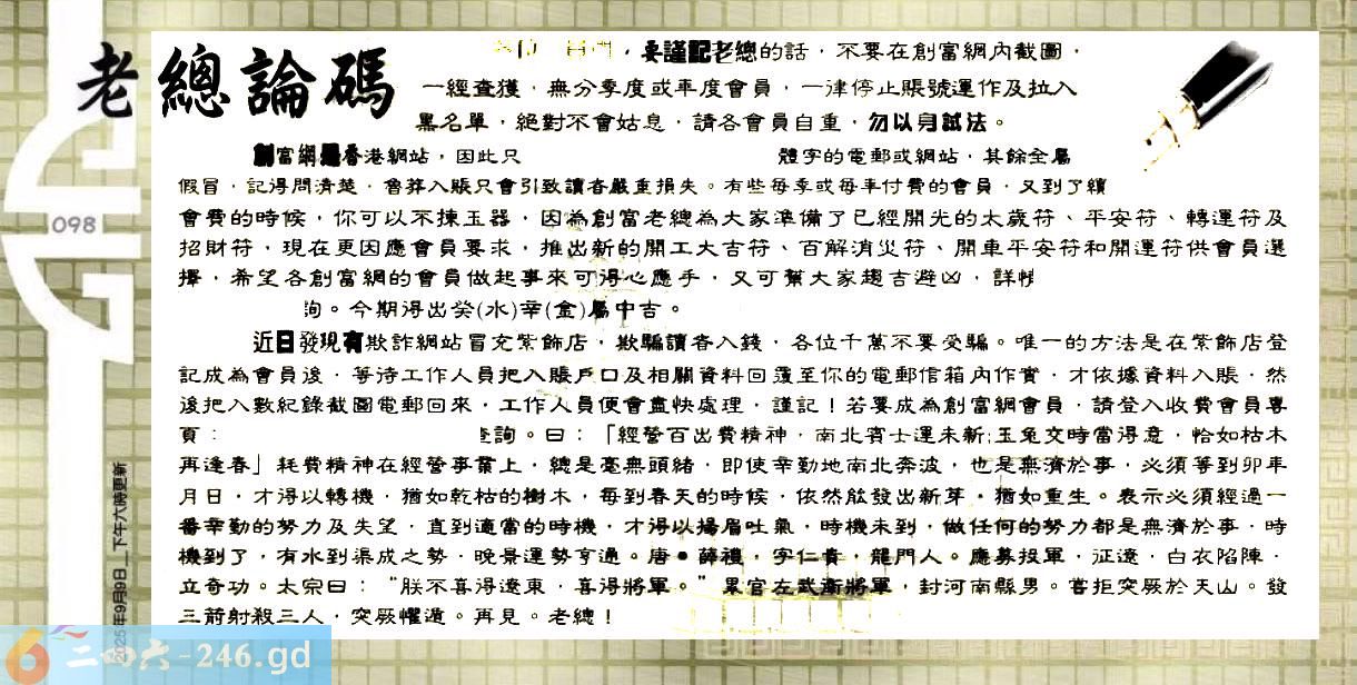 098期:六合皇金句/老总论码/萧公子/林大师/五行夺码/老总信箱截图