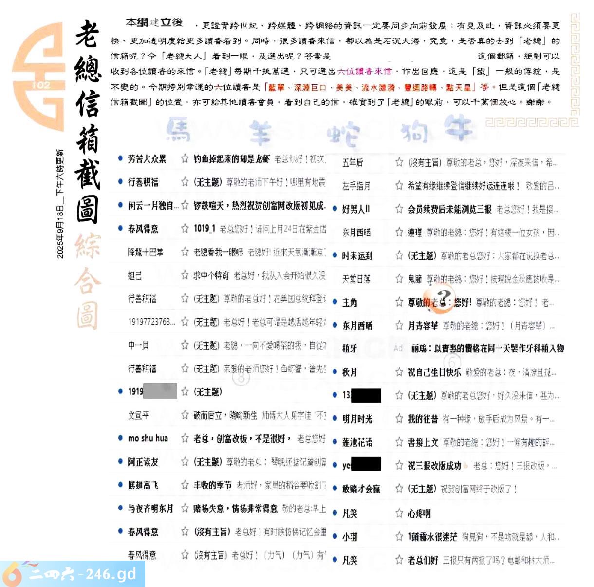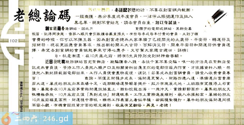 102期:六合皇金句/老总论码/萧公子/林大师/五行夺码/老总信箱截图