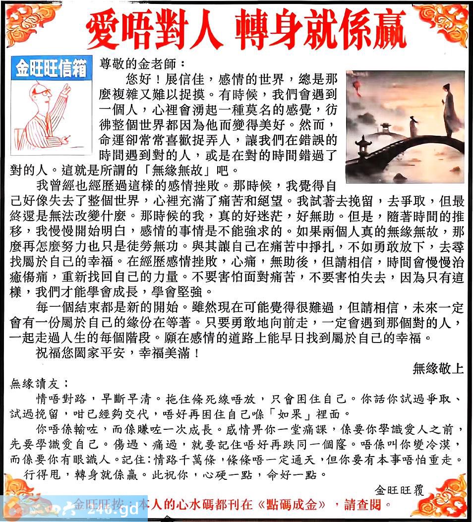 105期:金旺旺信箱彩民推荐→→《愛唔對人 轉身就係贏》