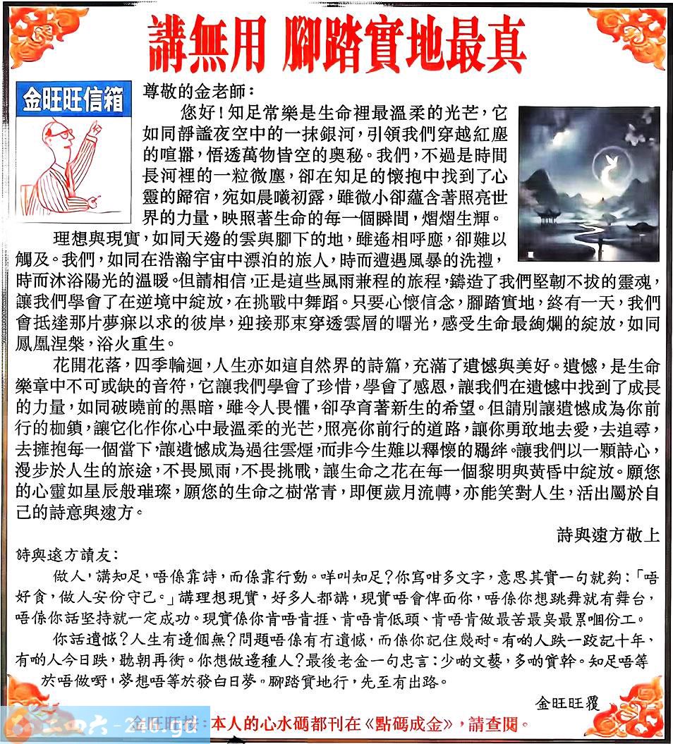 107期:金旺旺信箱彩民推荐→→《讲无用 脚踏实地最真》