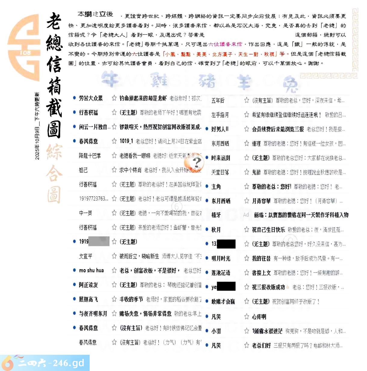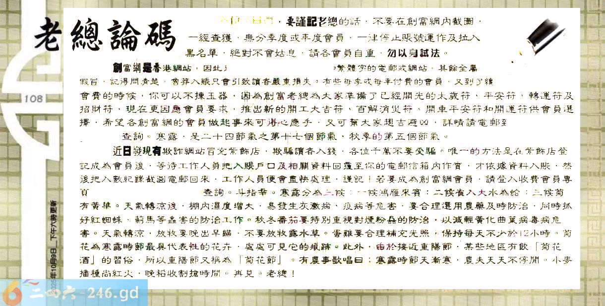 108期:六合皇金句/老总论码/萧公子/林大师/五行夺码/老总信箱截图