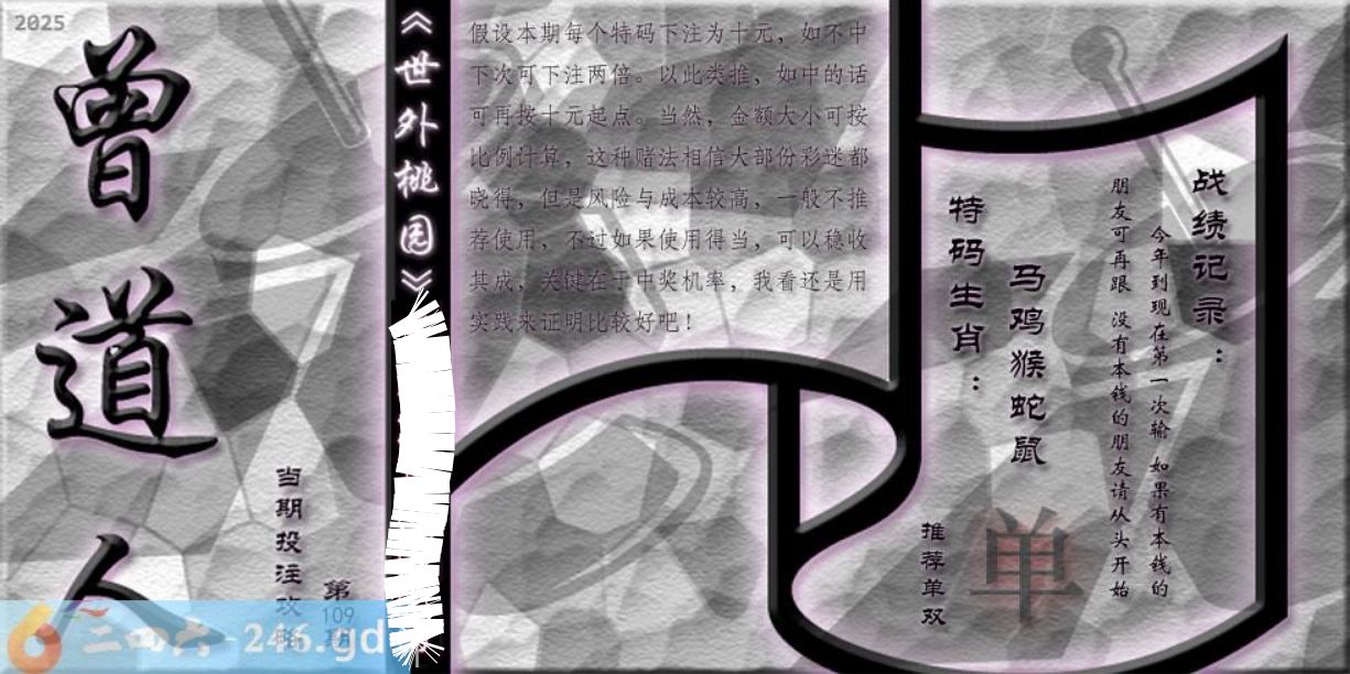 2025110期110期玄机来料:【网上三份特码资料大全】
