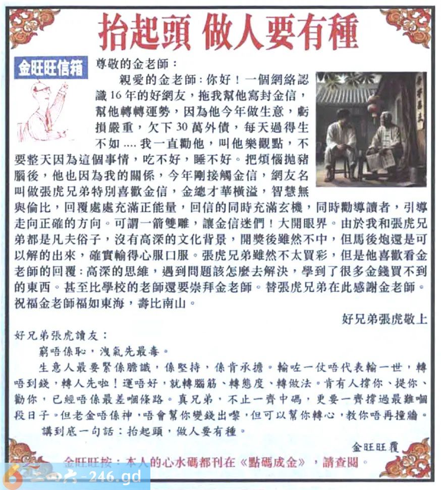 2025120期120期:金旺旺信箱彩民推荐→→《抬起頭 做人要有種》