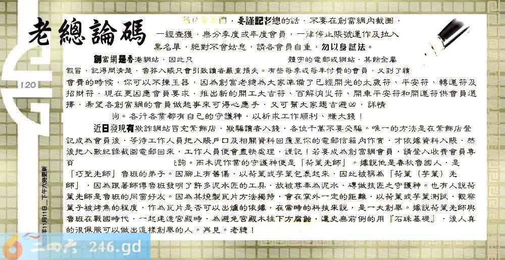 120期:六合皇金句/老总论码/萧公子/林大师/五行夺码/老总信箱截图