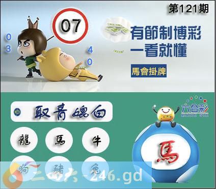 121期正版彩图挂:07爆:马挂牌成语:取青媲白挂牌出肖:龙马牛狗猪兔