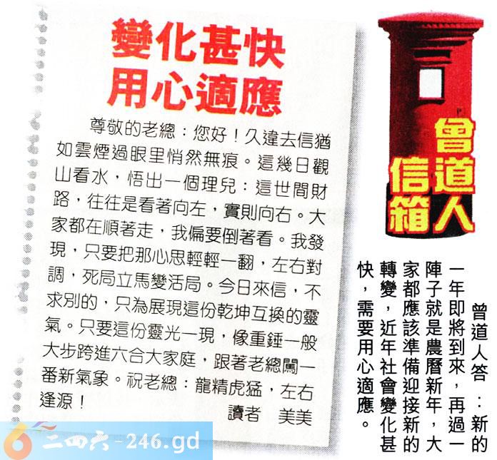 134期老版跑狗一字記之曰:【創】 詩雲:另覓枝頭創經緯,鴻圖大展振聲威。 羽翼漸豐,枝小難棲,綁手綁腳難施為; 另覓枝頭,創新經緯,鴻圖大展振聲威。 玄機測字:《酒》