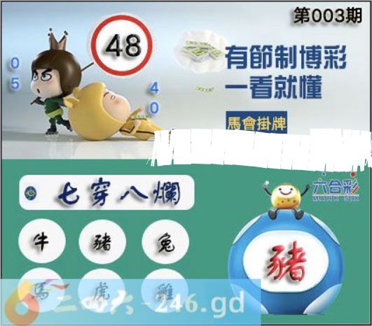 2025003期2026年003期正版彩图挂:48 爆:猪 挂牌成语:七穿八烂 挂牌出肖:牛猪兔马虎鸡
