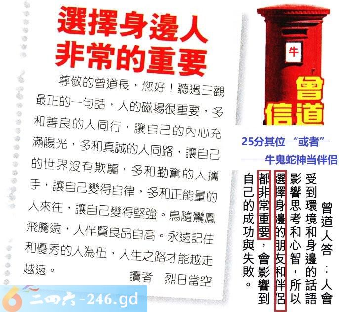 本帖最后由庞太师于2025-12-1020:32编辑 六信:【3】.老總:您好!光陰似箭,日月如梭,人間忽晚,山河已秋;一個轉身,秋天成了風景,冬天如約而至,千里黃雲白日曛,北風吹雁雪紛紛。會員8日到期,續費支持創富網。新的冬月,新的一日,新的開始,願所有的人,冬月一切安好;更希望這個冬月,能得到老總的指引,莫愁前路無知己,學生佩服老總文采,天下誰人不識君?紅字:山虧一簧學生隨風敬 〖隨風〗:多謝你對《創富網》的支持,描寫冬月景色的詩老總認為曹操的《冬十月》最為傳神,他筆下描寫了初冬十月北風、霜雪、大雁南飛的景象,以及農事收藏的準備。另外宋朝大詩人陸遊的《十一月四日風雨大作》也是經典之作:僵臥孤村不自哀,尚思為國戍輪台。夜闌臥聽風吹雨,鐵馬冰河入夢來。 【4】.老總見信好,習慣性每天次開完彩去信給你:特別是去信的第二天,總希望報中有自己席之地,每當期望的越大,失望也越大,當然老總也不可能兼顧所有讀者,誰來信訴苦什麼的,就要登他的信。今晚這個和49號失驚無神又蹦出來,真是丈二和尚摸不到頭。輪得已經找不到方向了,這樣下去如何是號?請老總上座為學生指點指點,感謝老總。祝貴報越辦越好,老總辛苦了!黄文俊 〖黃文俊〗:老總很早已經指出現在步入下元九運,九運為離火卦,所以火會特別旺盛。有如乾木容易生火招火。現在是20年火旺,特別是夏天火盛之時,今年三碧蚩尤入中宫,蚩尤好鬥三碧為木,木生火,所以更容易出現火肖火號。木能生火招火,当火然起时也意味着“木”已被烧尽,取一肖无木“牛”。更容易出現火肖火號,火肖已开,本期既有可能开”17火号” 贴信:【1】.現在的感冒傳染性太強了吧,老婆前兩天感冒流鼻涕,還在吃藥期間接著兩個娃都跟著感冒了,都不知道老婆怎麼照顧得過來哎...感冒是有前奏的,感覺要感冒了馬上的喝些開水,熱湯能預防就達到很好的效果,老總你認為呢?左傭右抱 〖左傭右抱〗:近日日夜的溫差差不多有十度,正正是最容易令人生病的環境因素,因此大家要小心著凉,切記要穿多一件衣服,相信冷風仍會持續一段時間。日夜里的温度没有十度也就说明当时的气候环境是处于寒冷的"冬季” 【2】.尊敬的老總,您好:今年兒子考上大學,我十年的陪讀生活也告一段落。過幾天房子租約到期,我就要搬離城市,回老家生活了。收拾房間時,在兒子留下的一大堆書本考捲和雜物裡,偶然發現一箱裝幀精美的《月刊》。我隨手翻了幾本,實在捨不得當廢品處理掉。冒昧請問您:《月月刊》還會續辦嗎?另外,過去的這些資料如今是否還有參考價值?盼您指點。祝好!大莫無疆敬上 〖大莫無疆〗:老總認為決定權一向也不在於三位老總,而是在你們手上,只要有一定數量的讀者要求月刊回歸,月刊就會像幻獸般出現。 本期一肖:【牛】17