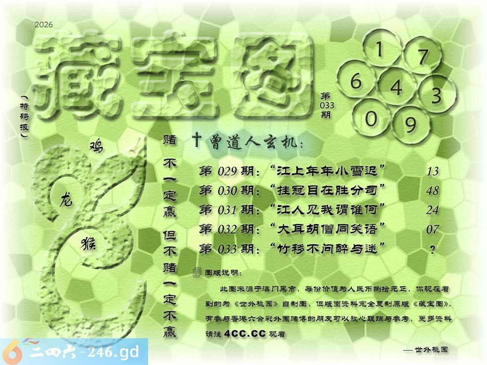 033期藏寶圖 新:竹移不问醉与迷 老:惹窗映竹满炉烟 禁:蛇禁:8尾玄機字:《要》