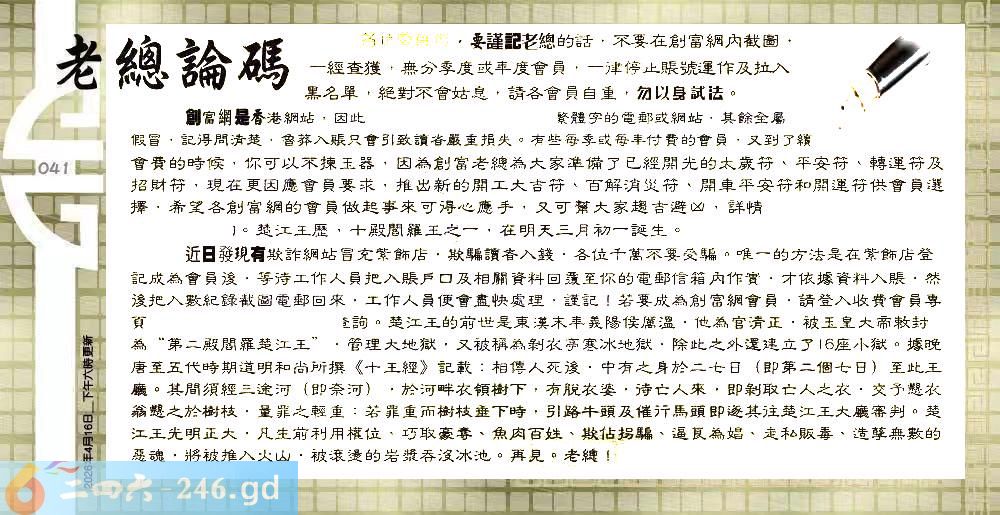 041期:六合皇金句/老总论码/萧公子/林大师/五行夺码/老总信箱截图