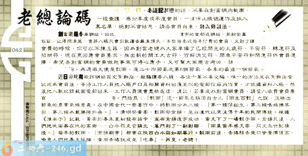 042期:六合皇金句/老总论码/萧公子/林大师/五行夺码/老总信箱截图