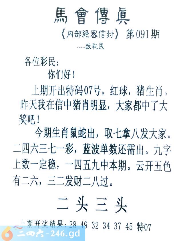 091期:首发推荐:≮馬會傳眞≯→(香港正版)