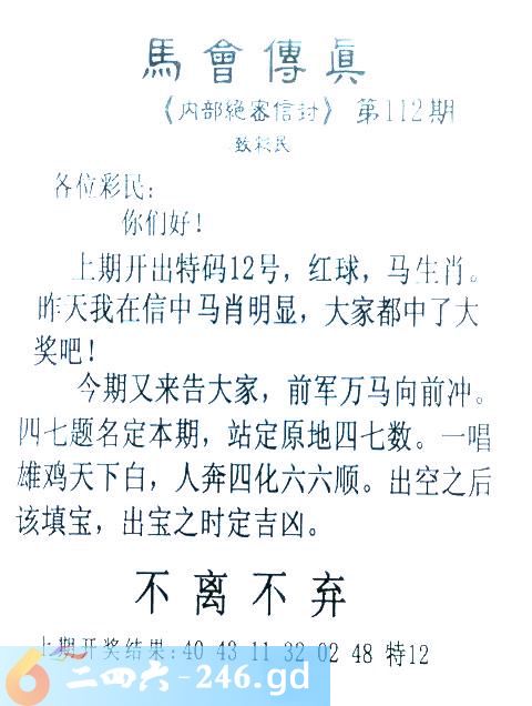112期:首发推荐:≮馬會傳眞≯→(香港正版)
