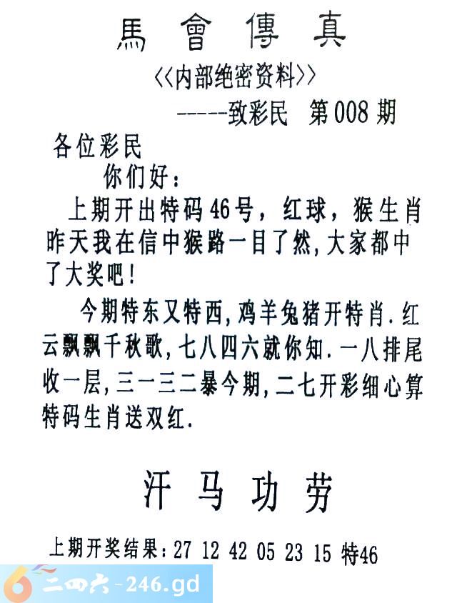 008期:首发推荐:≮馬會傳眞≯→(香港正版)