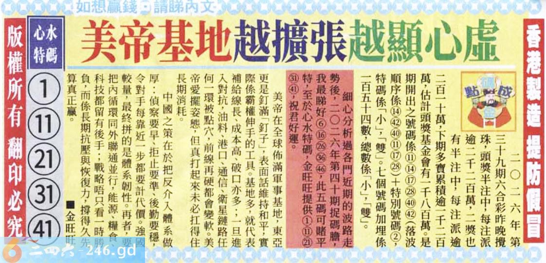 2026040期040期:金旺旺信箱彩民推荐→→《更新中》