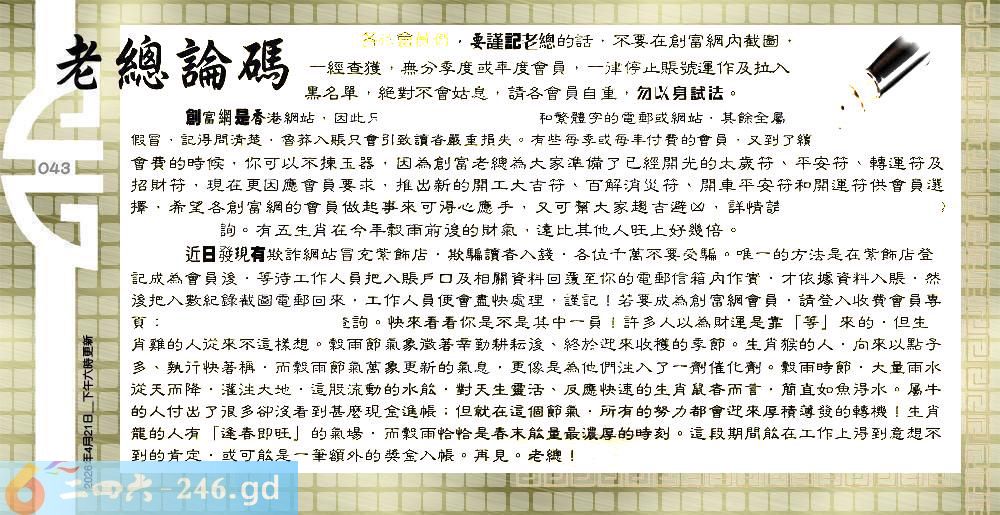 043期:六合皇金句/老总论码/萧公子/林大师/五行夺码/老总信箱截图
